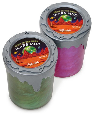 On our last flight back from Mars, we noticed a weird substance sticking to the USS Timmy-prise (the name of our ship, naturally). It was sticky and it bounced and it stretched and it definitely behaved in an alien manner. When night fell, we learned this unusual substance glowed in the dark, to boot. We did the only thing we could think of - we gathered it up, put it in retail packaging, and now we're offering it to you. Behold: Mars Mud.